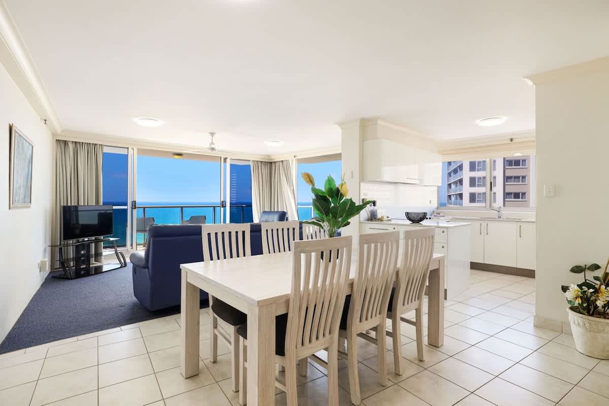 Apartment 11A at The Peninsula Apartments enjoys an exceptional location just 50 meters from the patrolled beach, 200 meters from Cavill Mall in the heart of Surfers Paradise, and 100 meters from the light rail station.