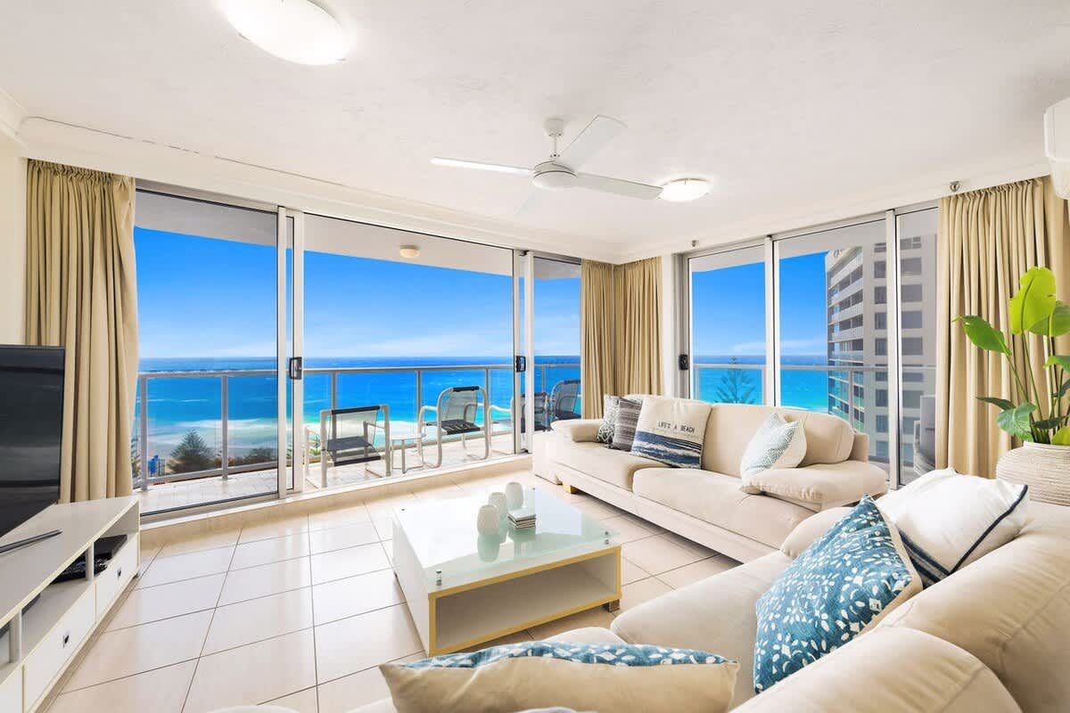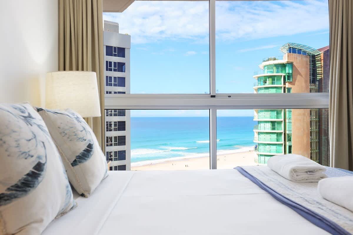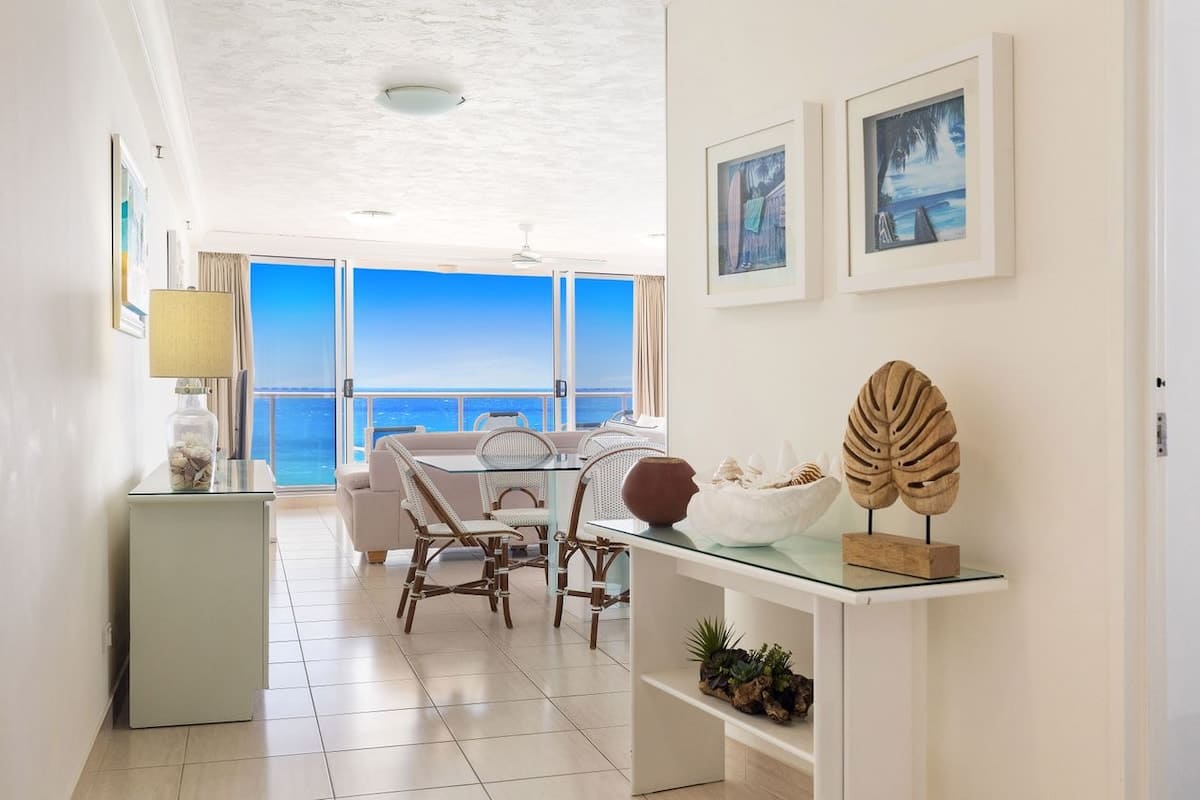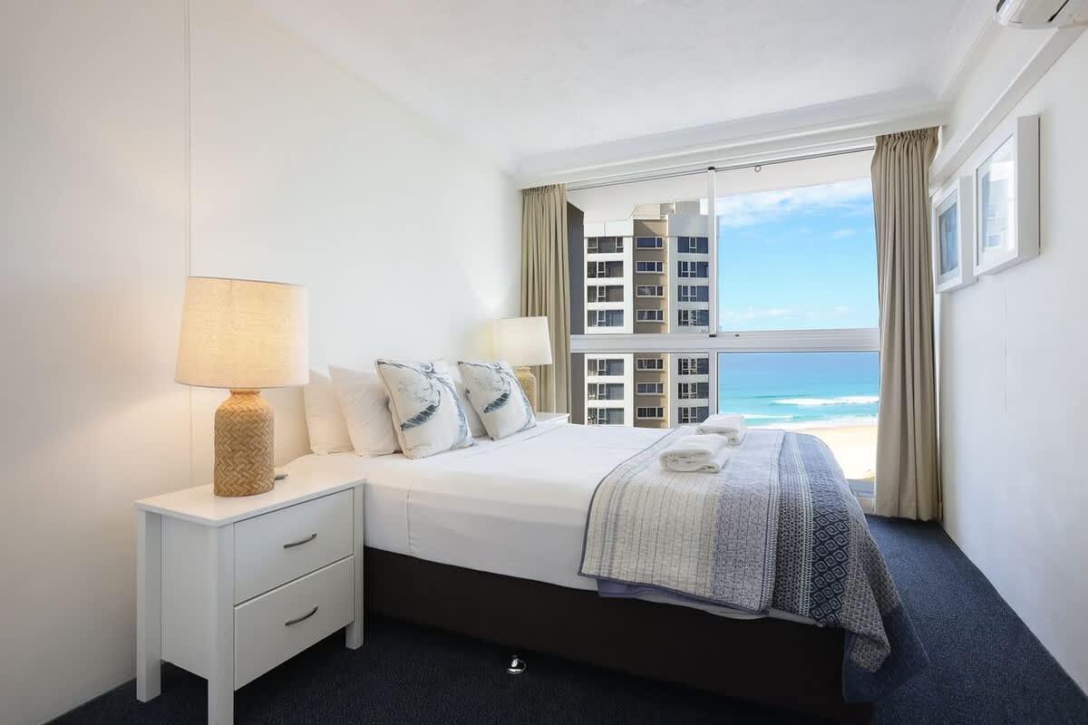 Enjoy stunning views of Surfers Paradise beach from the desirable North-East corner of this 12th-floor apartment, offering breathtaking skyline vistas and uninterrupted ocean panoramas. Overlooking the pool area, this well-appointed apartment features 2 bedrooms and 2 bathrooms, accommodating up to 5 guests.