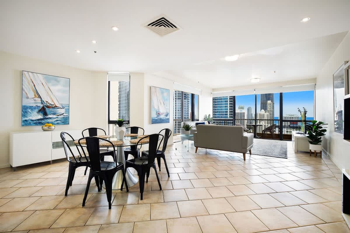 - Separate dining area with modern 6 piece dining set to enjoy meals while on your next Gold Coast holiday.