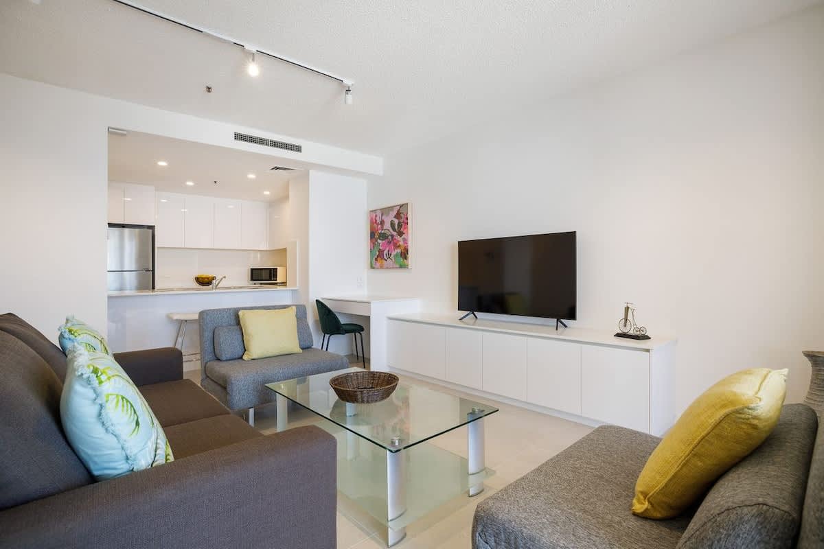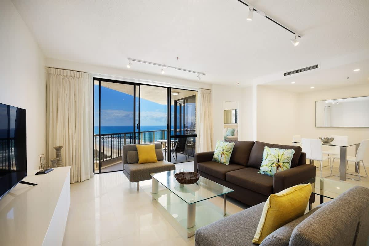 - lounge which opens onto a sunny North-Easterly facing balcony with ocean, resort and city skyline views