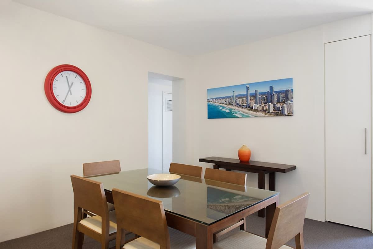 Separate dining area with modern 6 piece dining set to enjoy meals while on your next Gold Coast holiday.