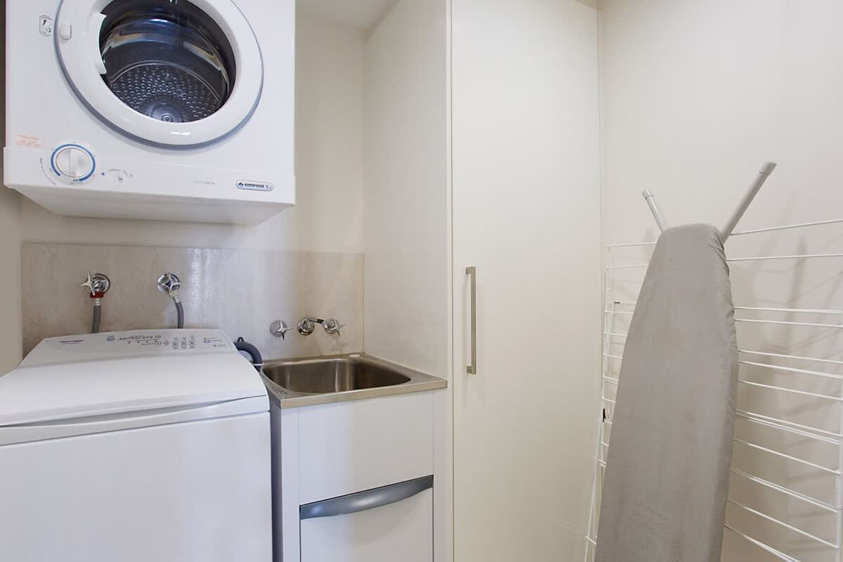 Separate fully equipped laundry with a washing machine, dryer plus all regular laundry supplies such as iron, ironing board etc.