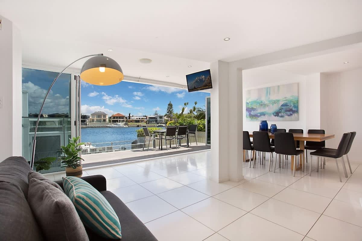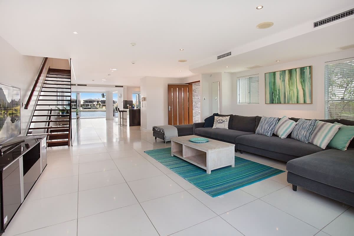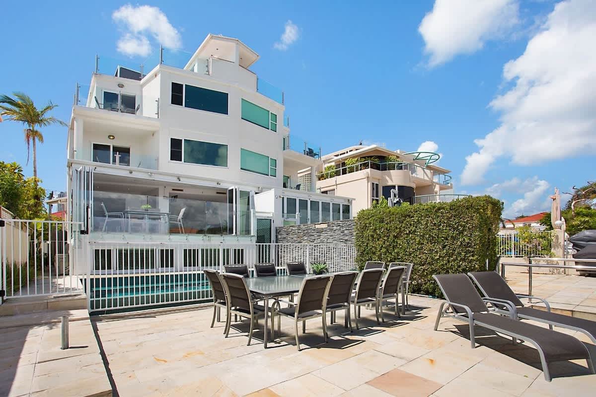 Casa Grande on the Water is in a prime waterfront location on the Main River waterway in Surfers Paradise on the Gold Coast. It has 4 levels of luxury accommodation including a basement entrance and access to the infinity pool and riverfront. Head up (and up) to the rooftop terrace for breath-taking views of the water and Gold Coast skyline - you'll feel on top of the world. 6 bedrooms (some with private balconies), a self-contained basement and a choice of living, dining and entertaining spaces allow up to 12 guests to spread out and have fun.