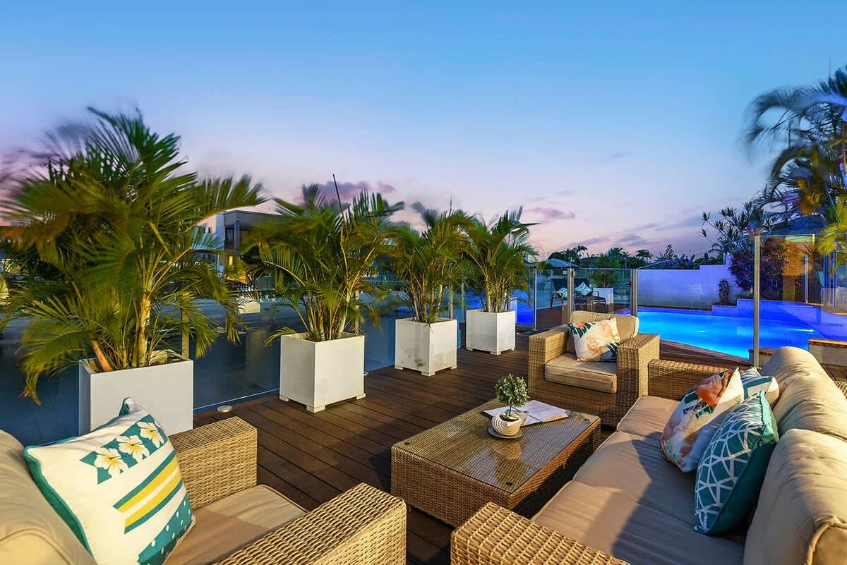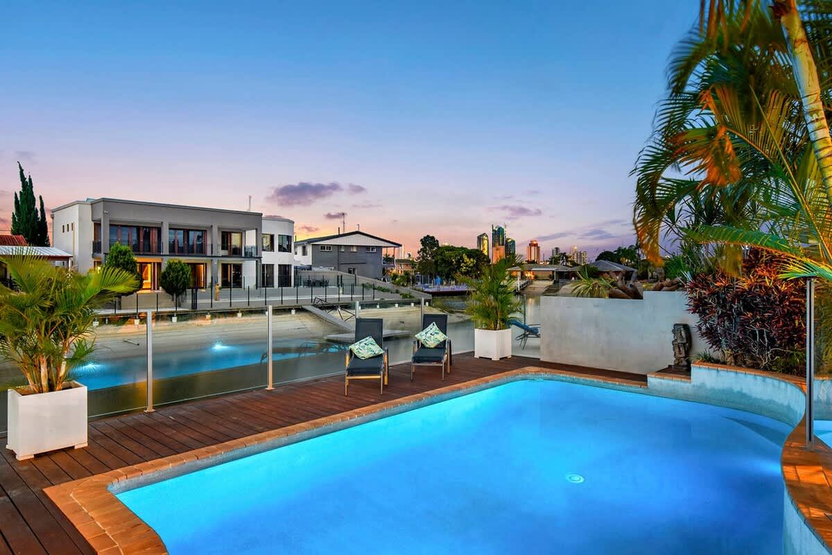Enjoy great outdoor entertaining areas complete with built-in BBQ area, alfresco dining and a glass-fenced pool overlooking the waterfront and sandy beach. This laid-back, waterfront property offers the peace and quiet to enjoy your stay yet is easy walking distance from everything Broadbeach has to offer. Broadbeach is well known as one of the best locations to holiday on the Gold Coast with fantastic restaurants and cafes, shopping, nightlife, the Casino, the convention centre, Pacific Fair shopping centre, Golf courses and of course our beautiful beaches. Theme Parks are around a 20-minute drive and Coolangatta airport is around 30-minute drive.